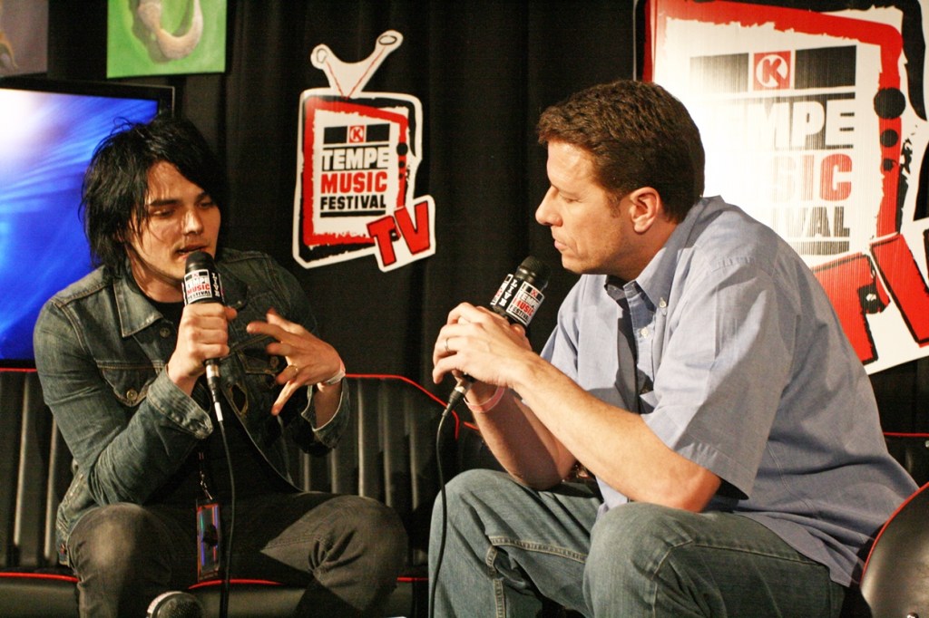 Valley music journalist Thomas Bond speaks with Gerard Way of My Chemical Romance backstage at the 2008 Tempe Music Festival. The interviews were streamed online and appeared on the event’s big screens.