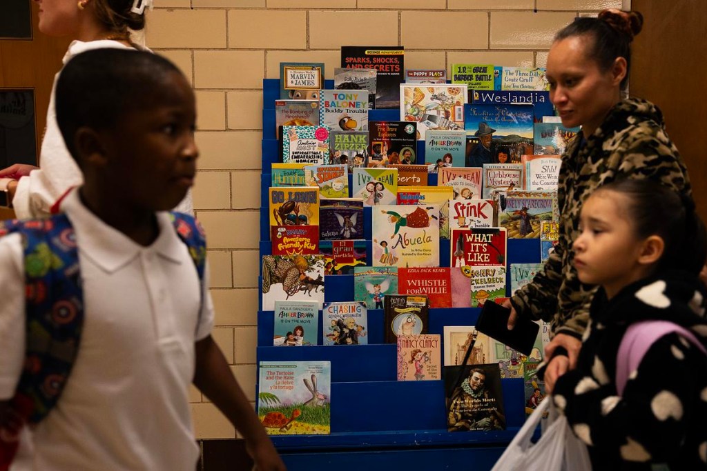 Students and parents walk through the halls of Mary Louise Phillips Elementary in Fort Worth during FWISD’s first day of school Aug. 12, 2025. (Maria Crane | Fort Worth Report/CatchLight Local/Report for America)