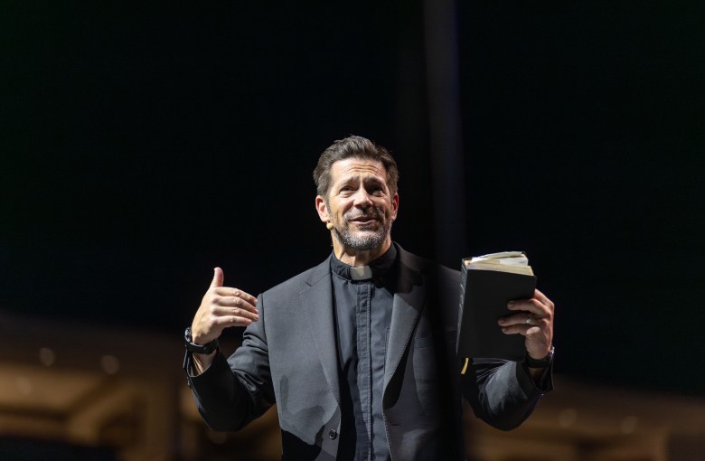 Father Mike Schmitz, youth and young adult ministry director for the Diocese of Duluth and host of “The Bible in a Year” podcast, brought his Parables Tour to Dickies Arena on Oct. 23, 2025. (Courtesy photo | Juan Guajardo, North Texas Catholic)