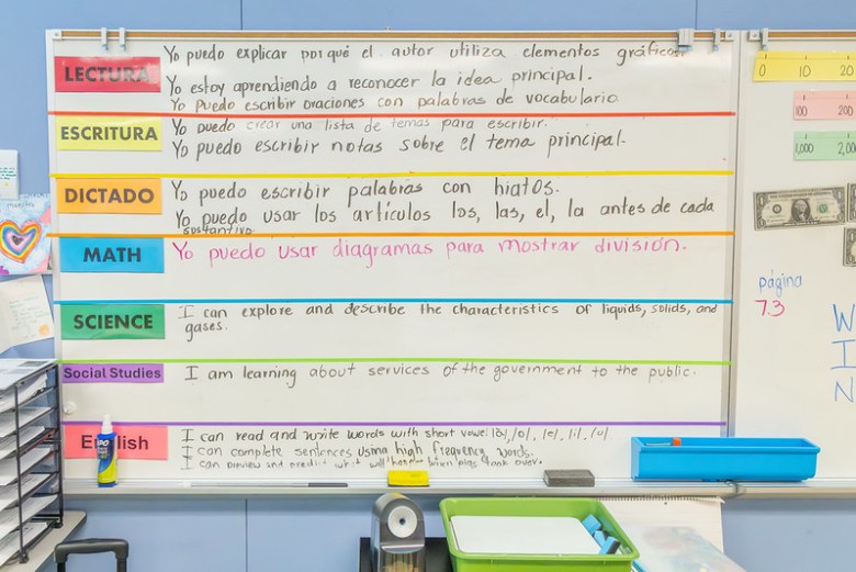 The lesson plans inside dual language classroom at Regency Place Elementary School in NEISD. Credit: Courtesy of North East ISD
