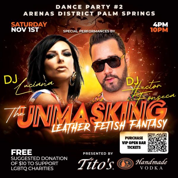 Saturday, November 1st is UNMASKED – a leather, fetish, and fantasy street party. The street will fully transform overnight, and we’ll have some of the world’s top DJs like Hector Fonseca and Luciana, the Queen of Electro. They’ve both played circuit parties worldwide.
