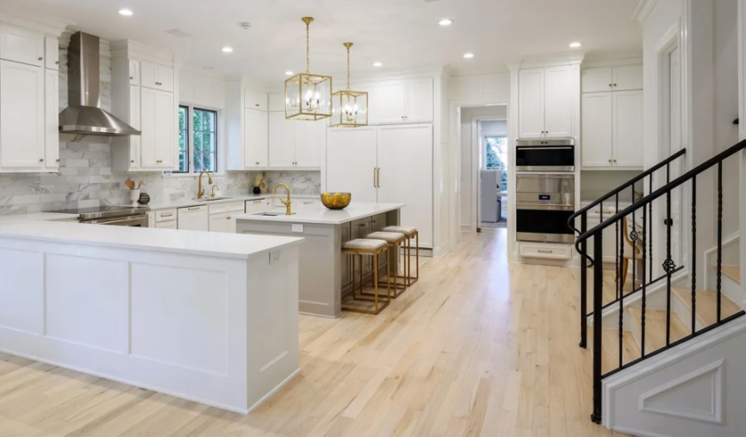 “It’s a great solution for a variety of wood floors,” Lemmons said. “You immediately turn a liability into an asset.” His team carried out the bleaching process throughout the house. Now all the flooring has a cohesive look.