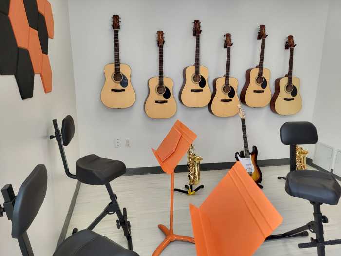 The BCNY music rooms have drums, guitars, keyboards, percussion instruments and more. Photo by Emily Swanson