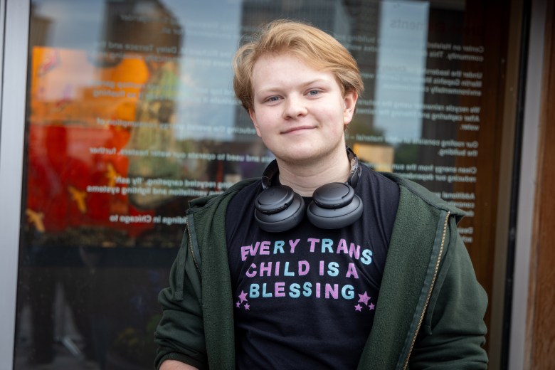 A participant in Center on Halsted’s youth program wears a shirt that says _Every Trans Child is a Blessing._ Photo by Kathleen Hinkel for Center on Halsted