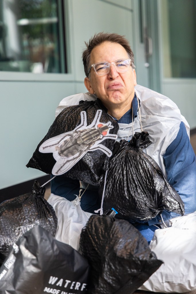 How to do it: Get a trash bag and cut it into four smaller bags. Add a few small plastic bags, fill each with crumpled newspaper, string them together and sling the strings over your neck. To top it off, investigative reporter Meir Rinde printed out a close-up photo of a fly and taped it onto a bag, helping to sell the smell aspect of the costume without needing to resort to actual stinky trash.