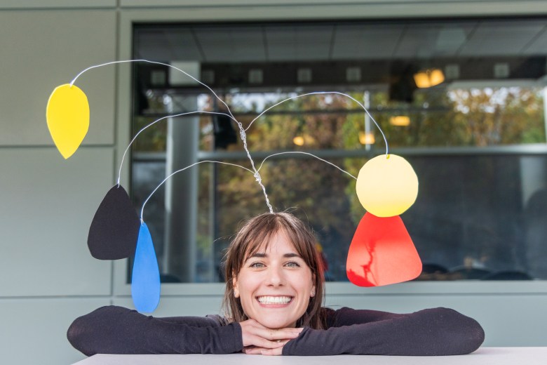 BP Philly culture reporter Julia Binswanger as a Calder mobile. (Kimberly Paynter/WHYY)