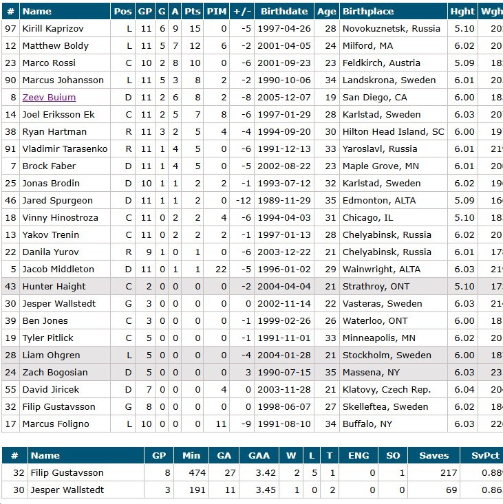 Goalies: Filip Gustavsson and Jesper Wallstedt