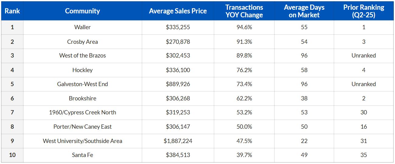For the third quarter in a row, Waller is the hottest housing market in the greater Houston area, according to the quarterly report from the Houston Association of REALTORS®.