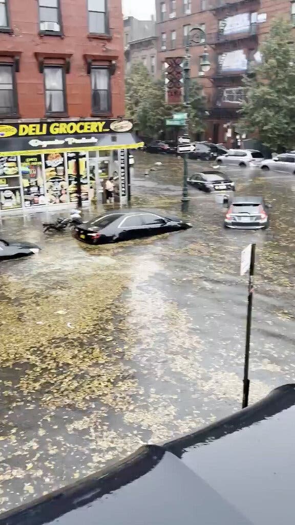 Flash floods inundated the subway and sent cars floating down city streets.