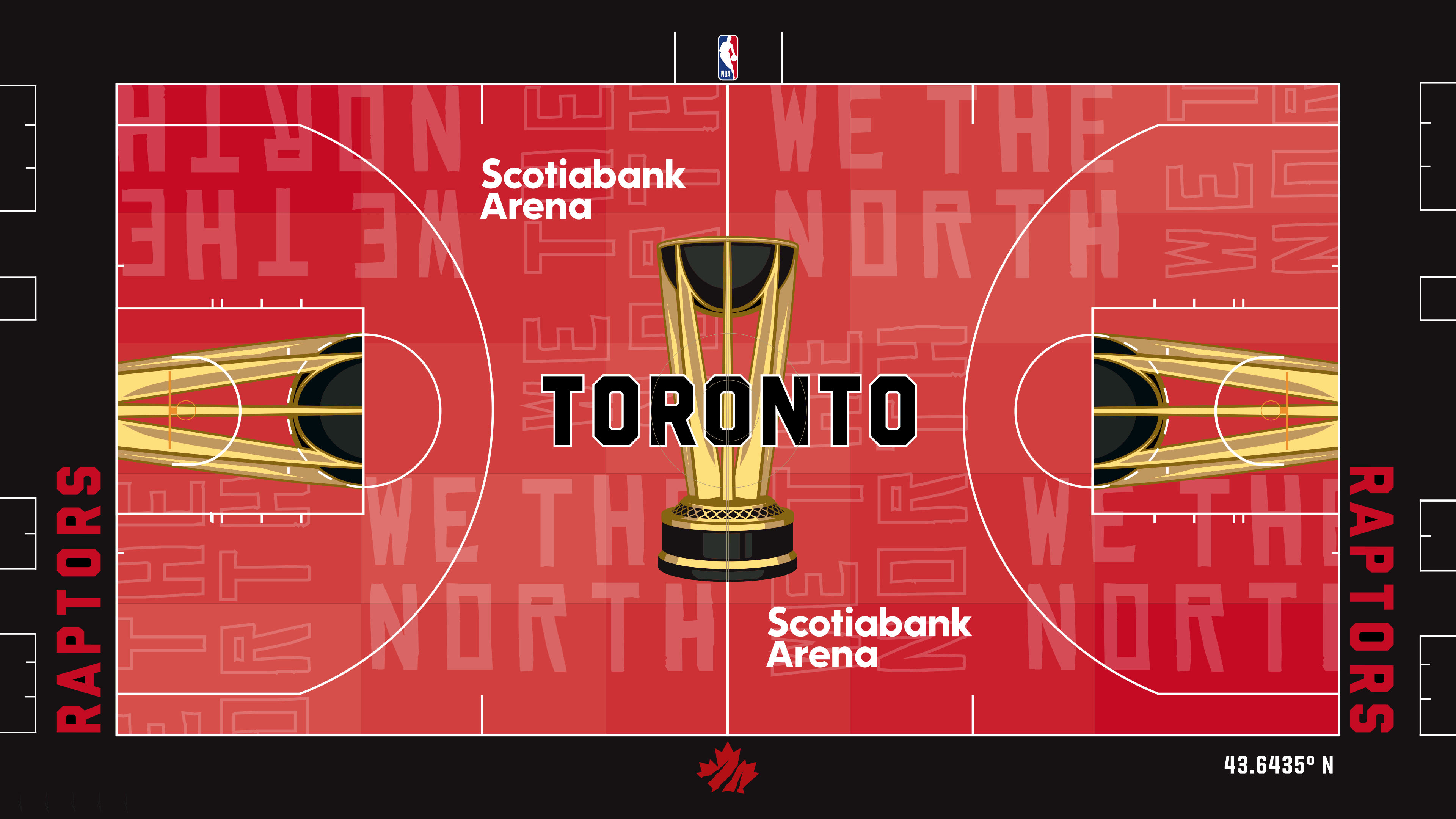 King (3): Did the designer of this court get in trouble? Was he or she forced to write “We the North” over and over like a child in detention? Koreen is right about the maple leaf with the Raptor claw mark, though. That part rules.