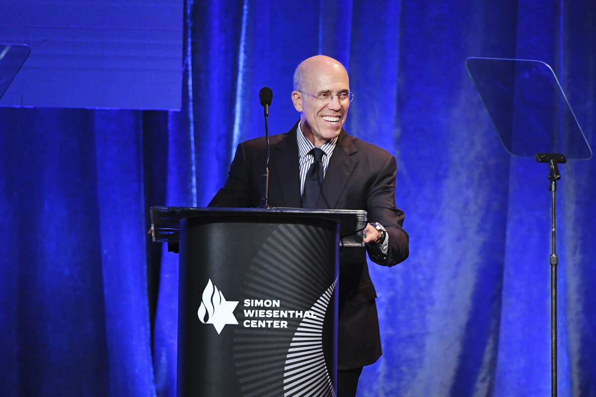 BEVERLY HILLS, CALIFORNIA – OCTOBER 30: Jeffrey Katzenberg speaks onstage during the humanitarian award dinner for Warner Bros. Discovery President and CEO David Zaslav presented by the Simon Wiesenthal Center at Beverly Wilshire, A Four Seasons Hotel on October 30, 2025 in Beverly Hills, California.Credit: on Kopaloff/Getty Images for Simon Wiesenthal Center