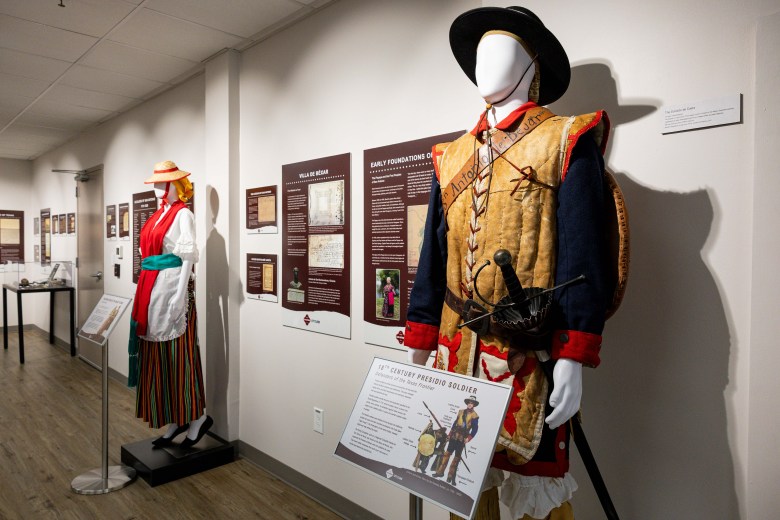 Traditional Canary Island wardrobe and 18th century Presidio soldier clothing is displayed in the City of San Antonio’s new Municipal Archives Museum. Credit: Amber Esparza / San Antonio Report