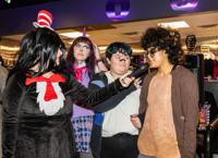 Electrical engineering junior Libia Contreras introduces themselves for the costume contest during Progressive Student Union’s Drac Show on Oct. 30 at Coffee Pop-Up Boutique. Contreras is the Progressive Student Union’s treasurer.