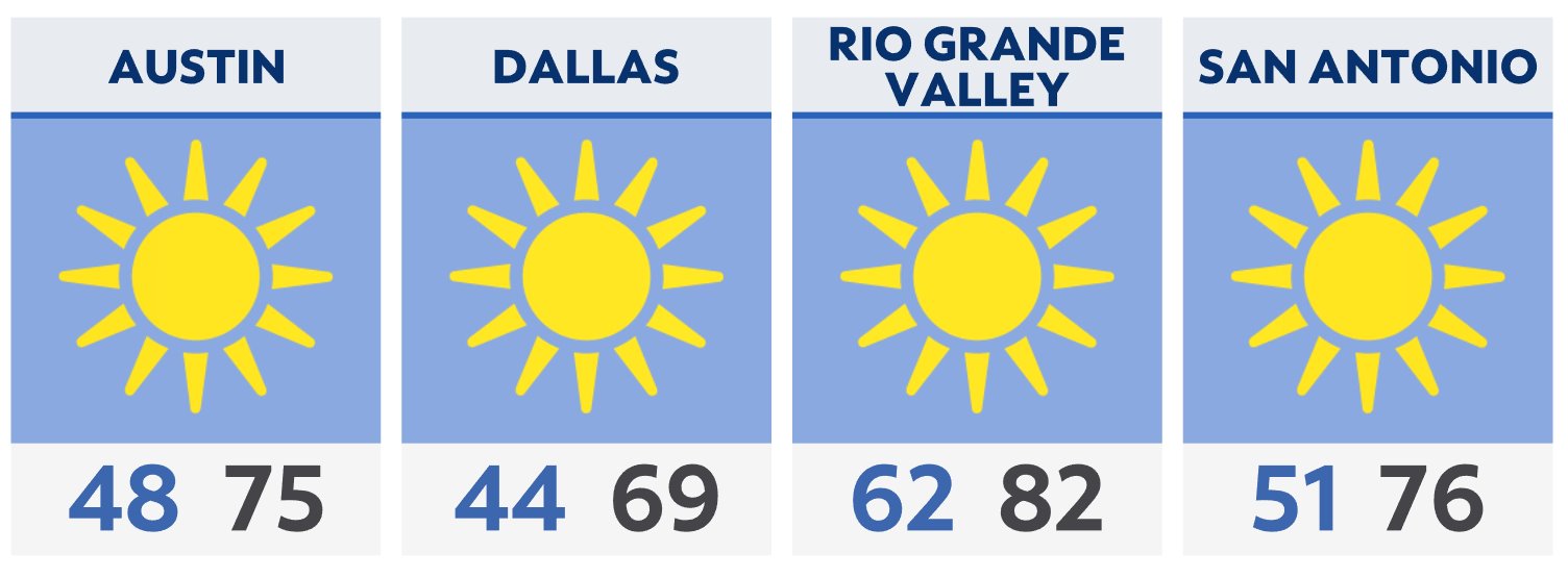 Take a look at your local weekend forecast: Austin | San Antonio | Dallas
