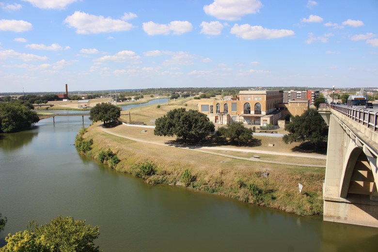 The historic TXU North Main Power Plant sits at the south end of the 300-acre Panther Island site north of downtown and south of the Stockyards. (Scott Nishimura | Fort Worth Report)