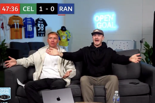 Rangers fan Halliday was taking part in Premier Sports Cup semi-final watch-along with fellow Open Goal host and former Celtic youth star Paul Slane.
