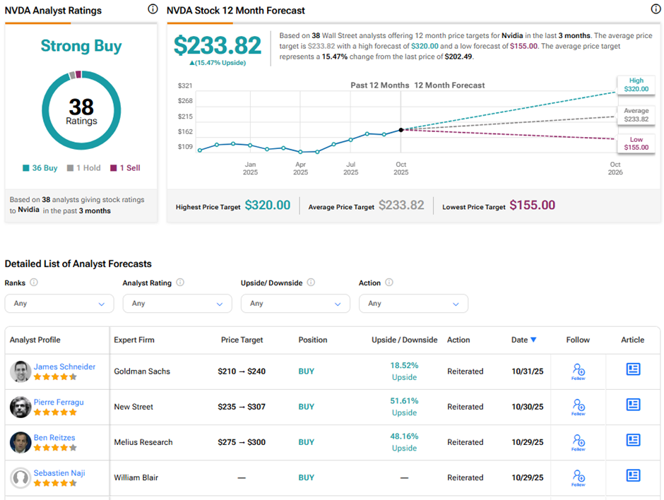 On TipRanks, NVDA stock has a Strong Buy consensus rating based on 36 Buys, one Hold, and one Sell rating. The average Nvidia price target of $233.82 implies 15.5% upside potential from current levels. Year-to-date, NVDA stock has surged nearly 51%.
