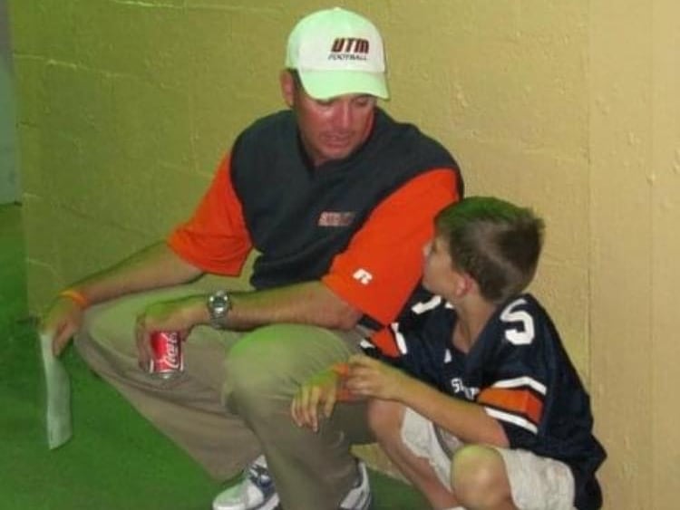 Jason Simpson (left) with his son Ty Simpson (right) at a UT Martin game. Contributed image