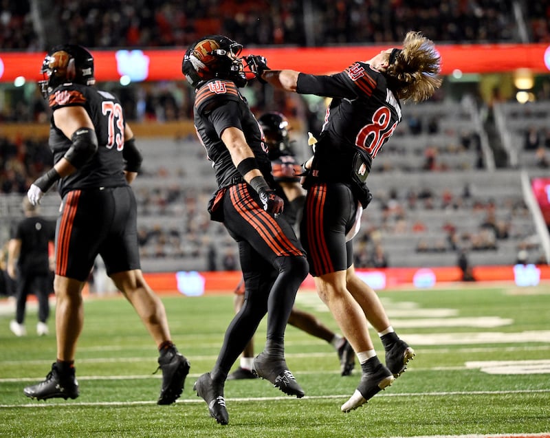 Utah Utes wide receiver Creed Whittemore (80) celebrates after his touchdown with teammates as Utah and Cincinnati play at Rice Eccles Stadium in Salt Lake City on Saturday, Nov. 1, 2025. | Scott G Winterton, Deseret News 3. Utah Utes (7-2, 4-2)