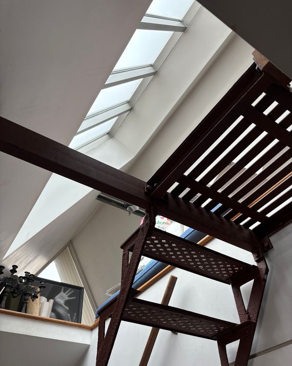 The stairway connecting the apartment’s second and third floors of was once part of the fire escape for the former Gospel Tabernacle Church in Times Square (now John’s Pizzeria).