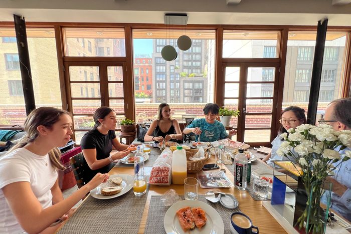 As all of this house business was happening, Tesoro was also trying to plan for the rest of his life. “I wanted a place where I would be able to start a family,” he says. For a gay man in his 40s in New York City, “it was not a straight path.” Tesoro adopted his son, Victor, in 2000. Uguccioni moved in soon after. The home was still far from complete. And maybe Tesoro was a little lax on childproofing, like waving off putting a railing on the temporary stairwell between the first and second floor. “The moms and babysitters were a little nervous,” he says. (Uguccioni was too, at first.) “For the kids, it didn’t matter,” Tesoro says. Victor, now 25 and living in Ithaca, loved it. He tells me about racing with his friends up and down the steps and having Nerf-gun fights — as if the house were their playground. (One ground rule, he remembers, was no climbing on the water tower behind the penthouse.) Victor also made sure everyone knew they were stepping into his dad’s magnum opus. “I was really proud of him,” he says. “Whenever my friends would come over, I’d be like, ‘My dad designed this.’” The roof terrace became a spot to splash around in a mini-pool, and where the couple hosted barbecues with other families and held a bar mitzvah for Victor. “Kids liked coming over here,” Tesoro says. “And I loved the kids.”