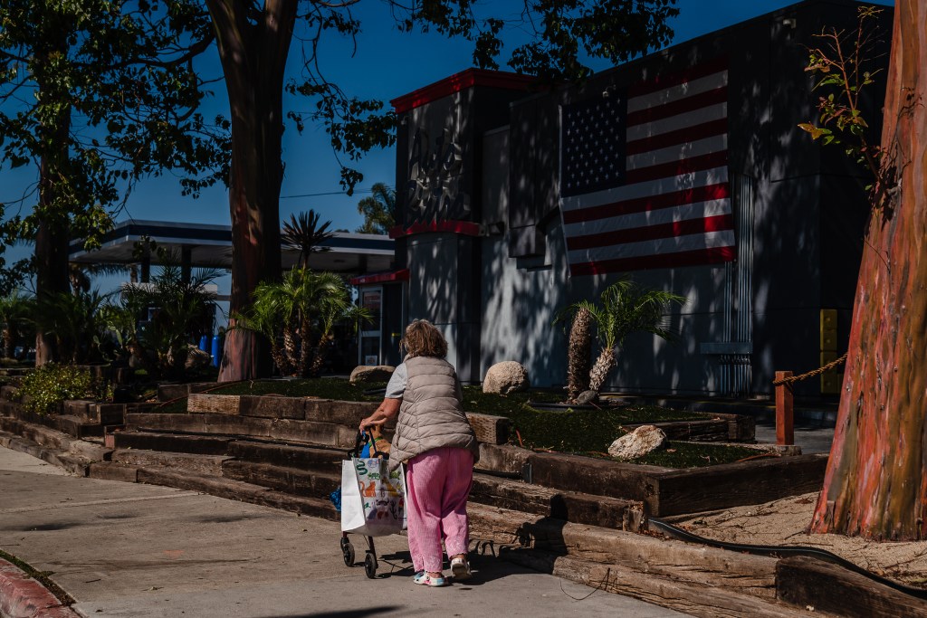 A woman walks off of Sports Arena Boulevard on Oct. 24, 2025. / Ariana Drehsler for Voice of San Diego