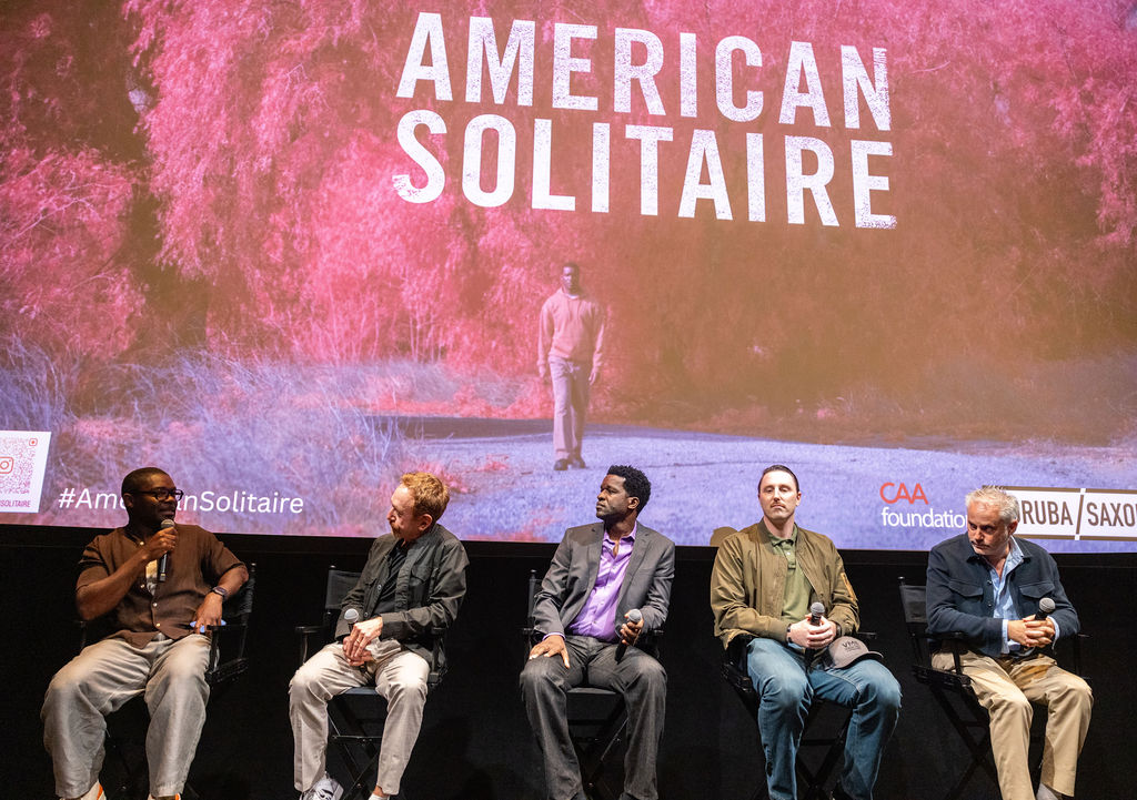 An IMPACT CONVERSATION with David Oyelowo, Aaron Davidman, actor Gilbert Owuor, Veteran Mike Taylor, Brady Advocate Matt Litton at the industry screening of “American Solitaire.” Photo courtesy of Aaron Davidman