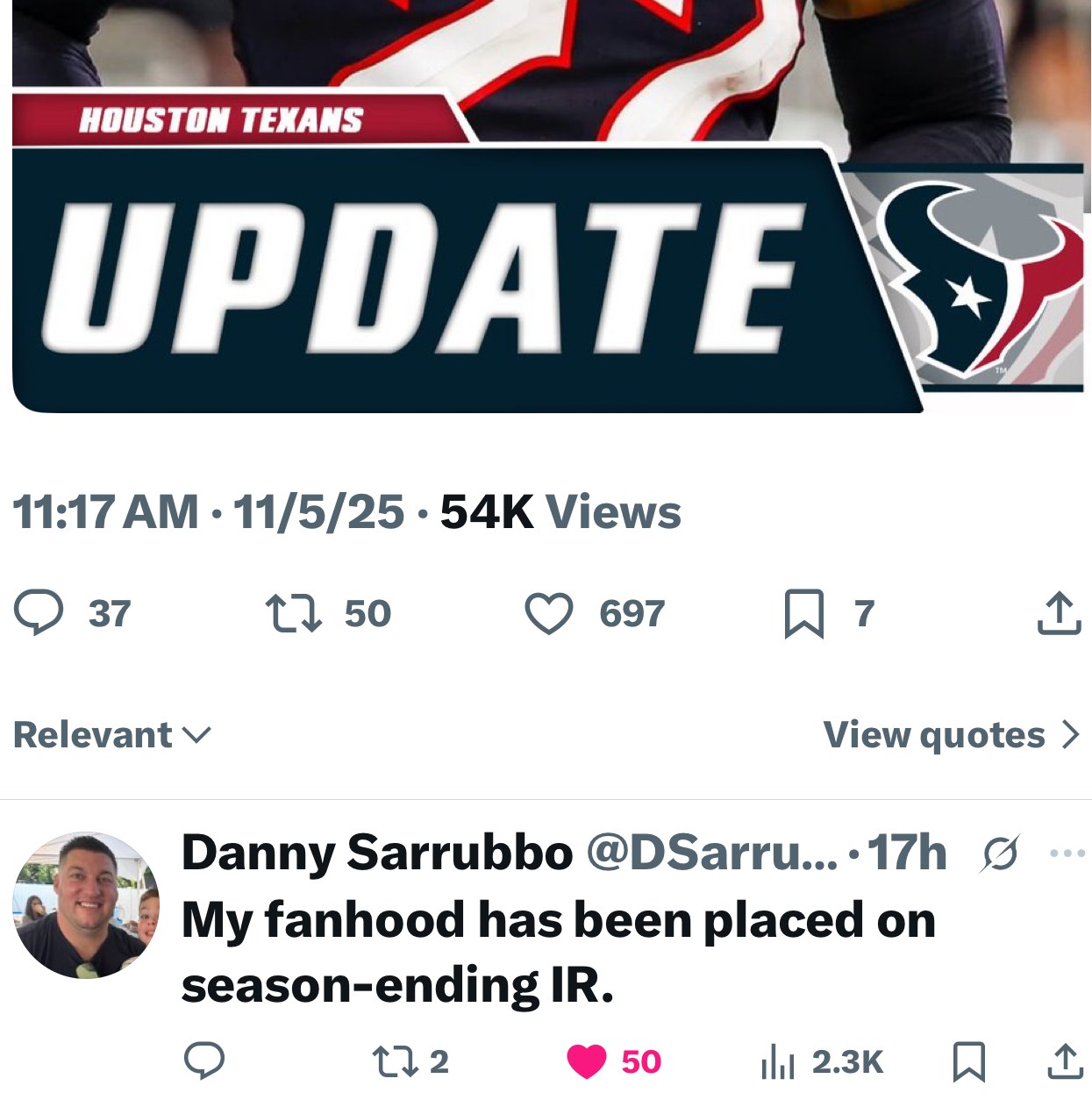 Texans supporter Danny Sarrubo seems to have summarized this week for a lot of us in his response to the news about Jaylin Smith hitting IR: