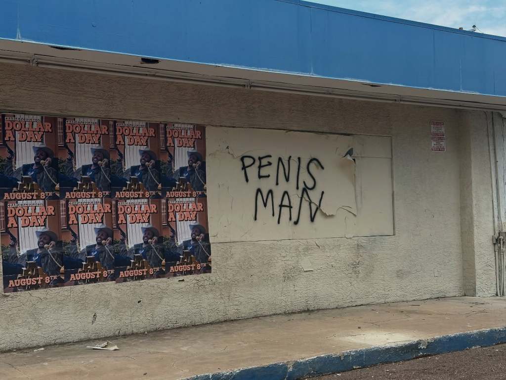 Similar late-night taggings have appeared across Phoenix, Tempe and other Valley cities since Penis Man began scrawling his virile nickname in 2019. He’s tagged trash cans, vacant buildings, street signs, utility poles and alley walls. In the years since, he’s become a local countercultural icon, quasi-folk hero and viral sensation. You can buy Penis Man T-shirts at a Valley boutique and listen to a folksy ballad performed by local singer-songwriter Jesse Yonkaz on Spotify.