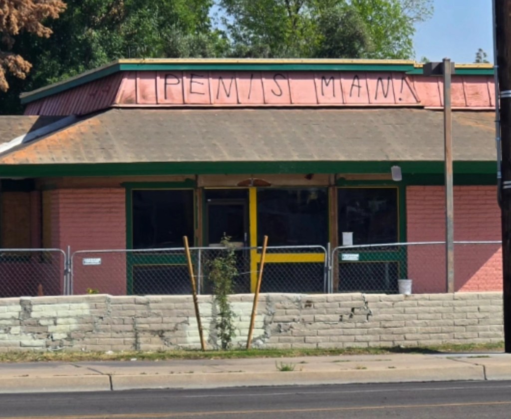 A Penis Man tag on an old Filibertos on Broadway Road in Tempe.