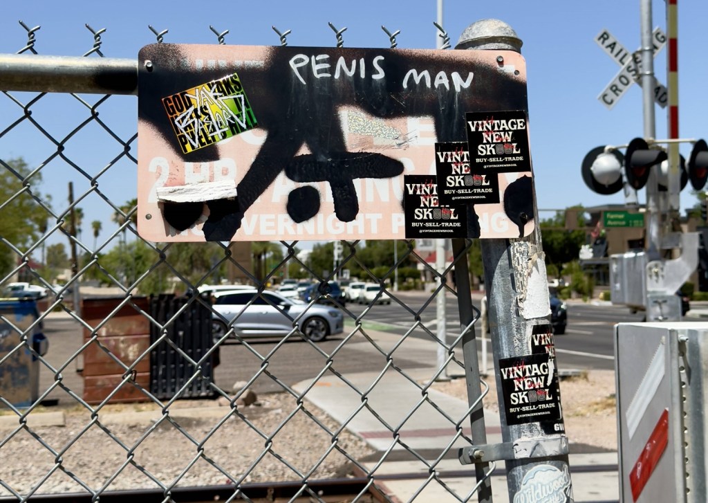 A Penis Man tag along the train tracks near Buffalo Exchange in Tempe.