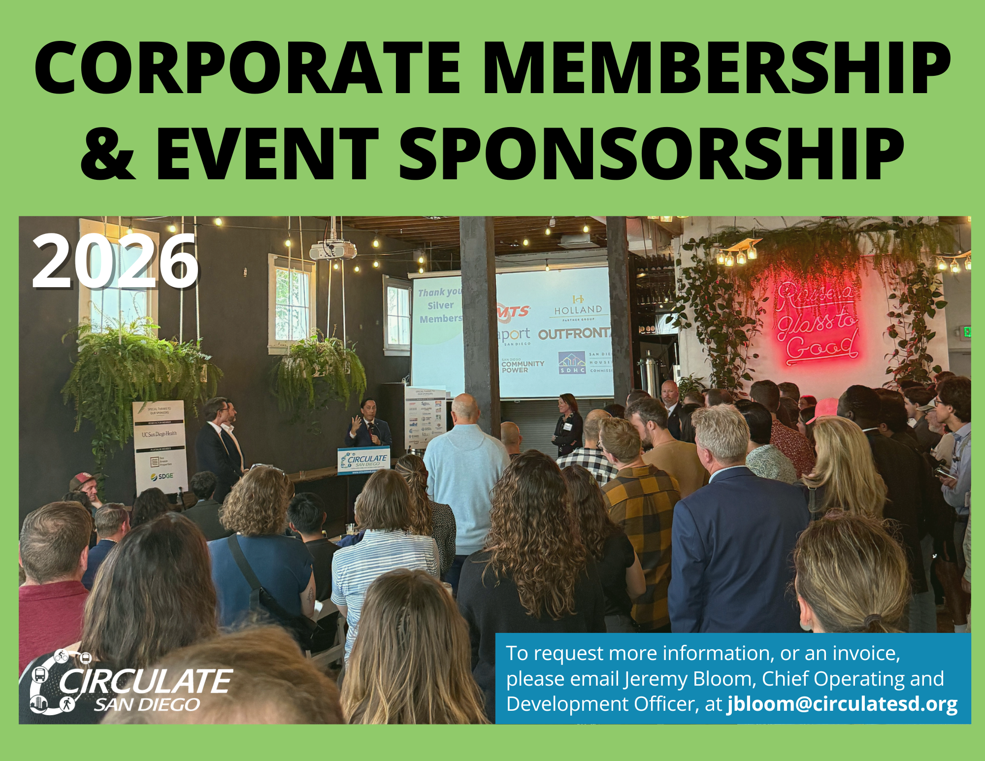 Corporate Members are the driving force behind Circulate San Diego’s work to champion safe streets, better transit, and smarter land use. Your support helps make our region safer, more connected, and more sustainable.