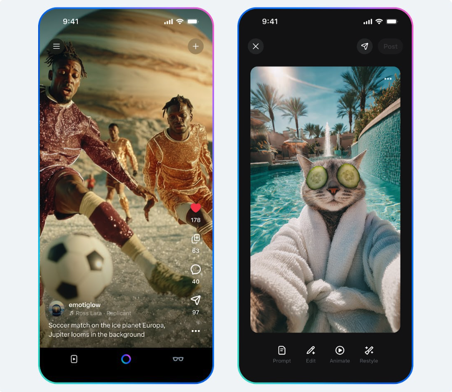 Putting media generation at the heart of the experience, you can create your own videos using imaginative prompts, or remix what’s already been shared. There are options to add new visuals, layer in music, or adjust styles to match your individual taste.