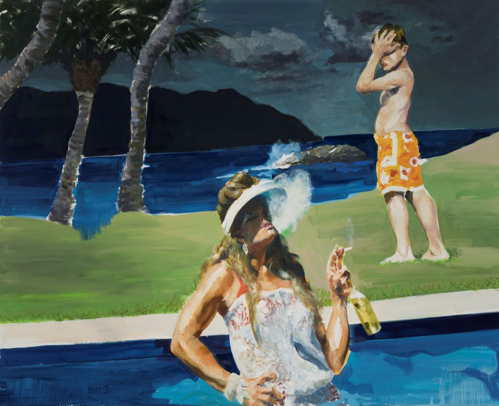 Fischl mined the Valley for subject matter, too. On first glance, the images depict laid-back tableaus with backyards and swimming pools as a backdrop, but upon closer inspection, they reveal darker themes and dissatisfaction with post-World War II suburbia.