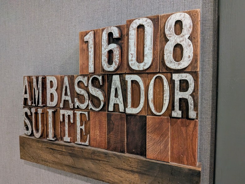 My unit (the Ambassador Suite, featuring press block letters reminiscent of similar items used on Printers Row) was pretty spacious, with a living area, a separate bedroom and an impressive bathroom. And as for the view, it’s simply spectacular, with panoramic views of the city’s New East Side area.