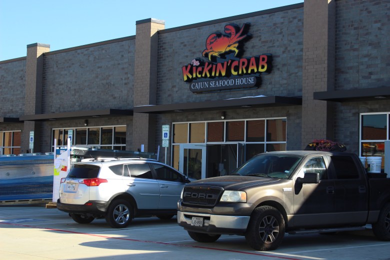 Construction crews worked Nov. 6 on The Kickin’ Crab location under construction in the H Mart-anchored shopping center in Haltom City. (Scott Nishimura | Fort Worth Report)