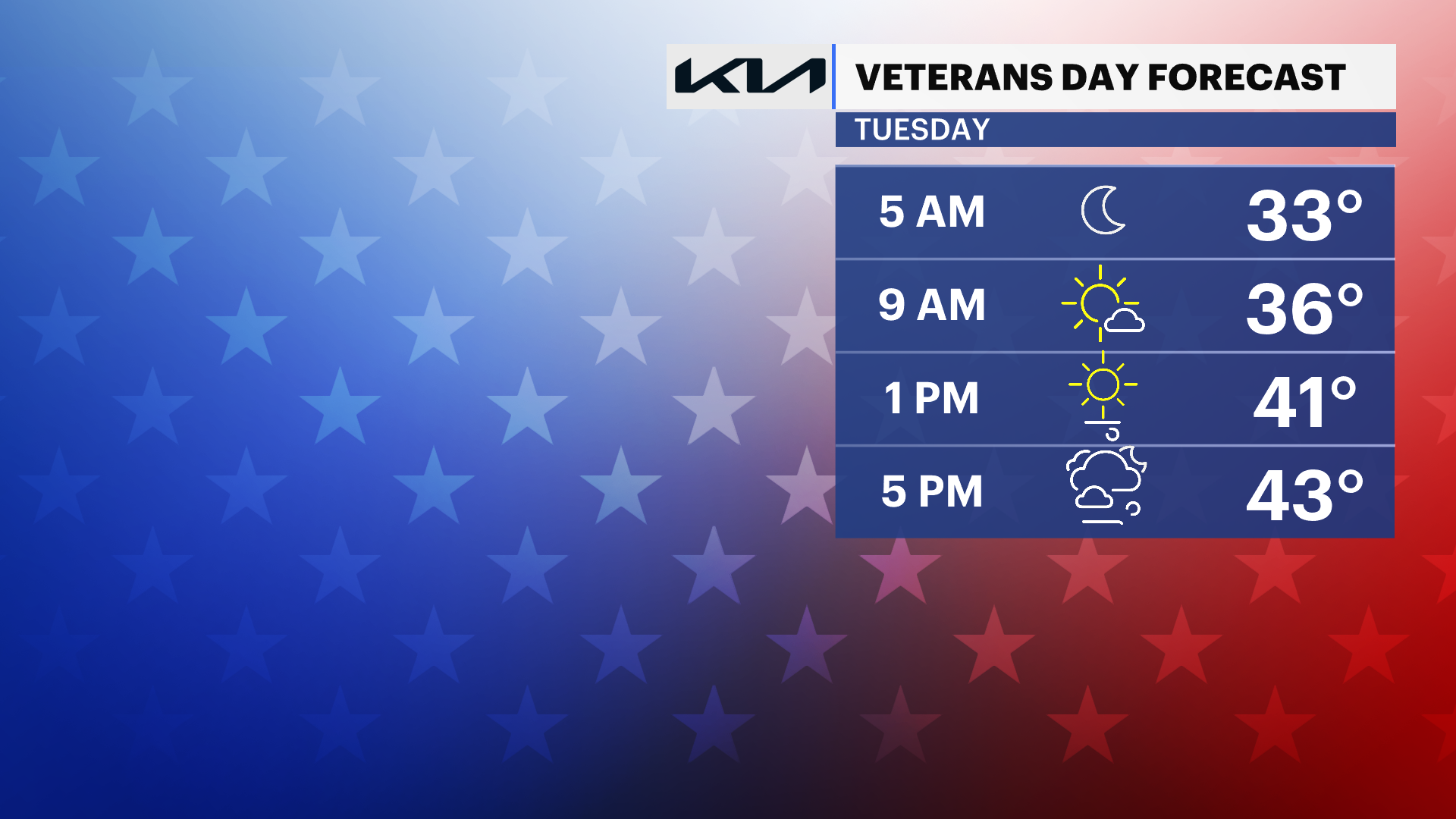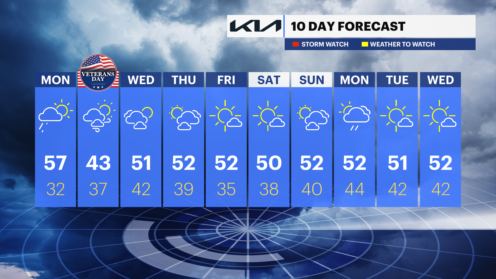 Veterans Day will be particularly brisk, with highs struggling to climb out of the mid-40s. While the week ahead looks predominantly dry, it will feel significantly colder, so be sure to bundle up.