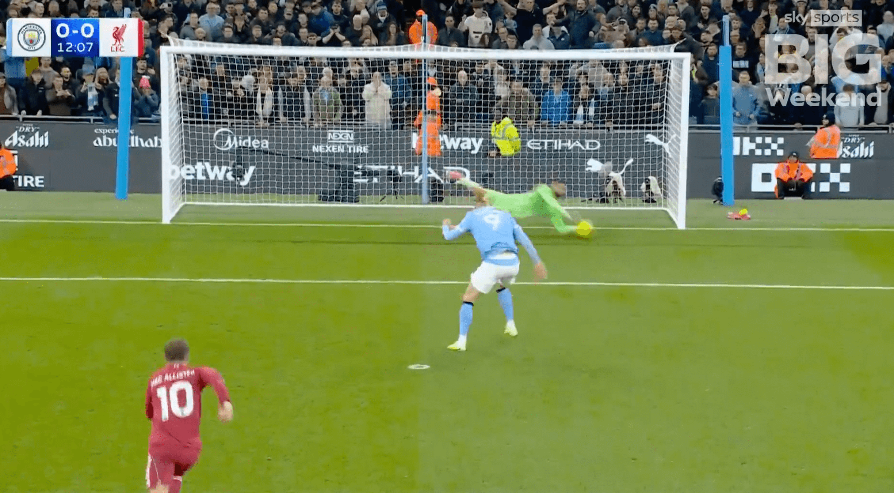 Despite being faced with the league’s most in-form striker in Haaland, Mamardashvili guessed the right way, diving to his left to make the save.