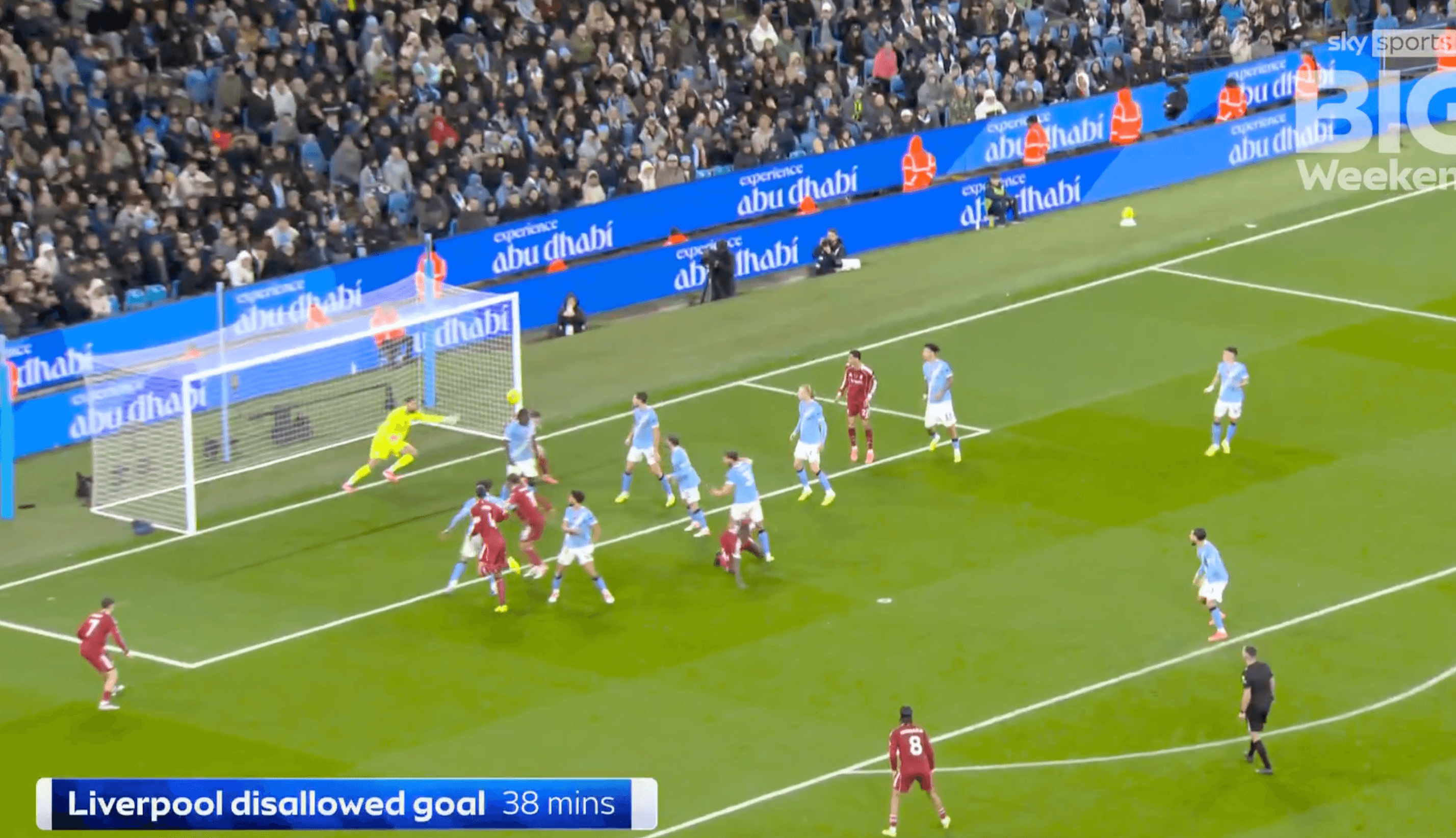The decision was initially offside, but after a VAR review – with Chris Kavanagh also the referee in that game, oddly enough – it was given after Bernardo was deemed to have no impact on the goalkeeper.