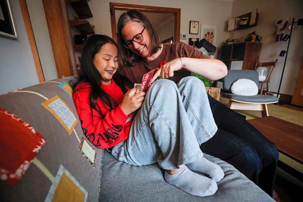 Hazel Pancoe, with her mother Colette, has dyslexia and struggles with reading. She had to move from public school to a private one to be in a more supportive environment.
