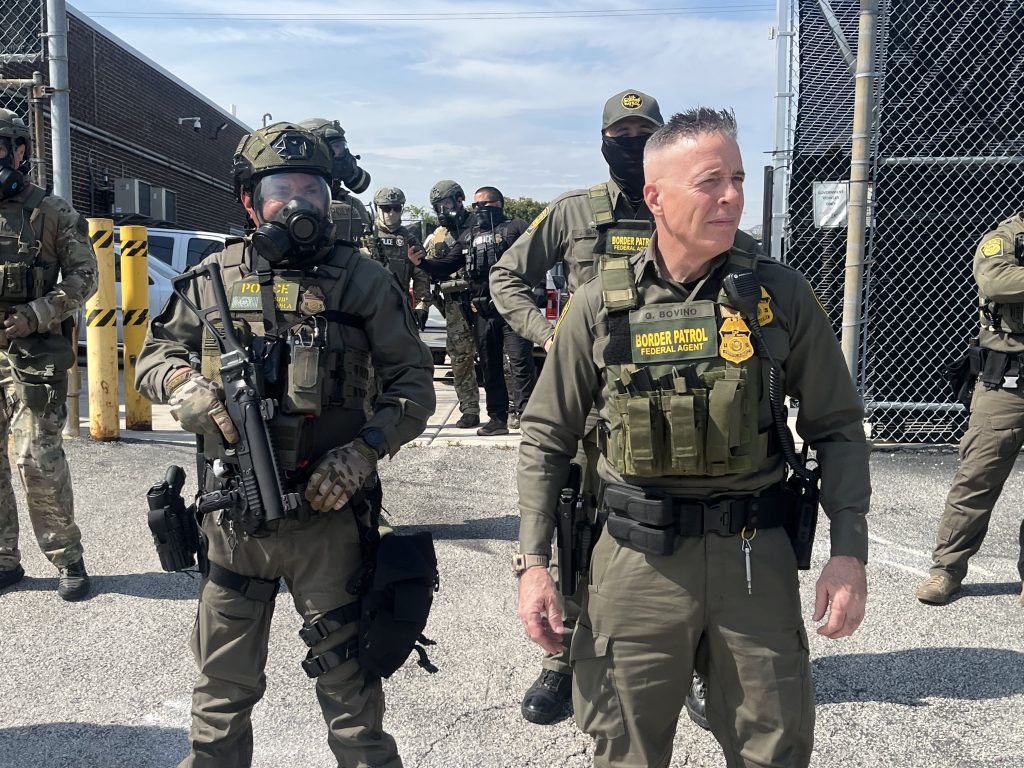 Gregory Bovino, commander-at-large of the U.S. Border Patrol, looks on in Broadview on Sept. 19, 2025. Credit: Charles Thrush/Block Club Chicago