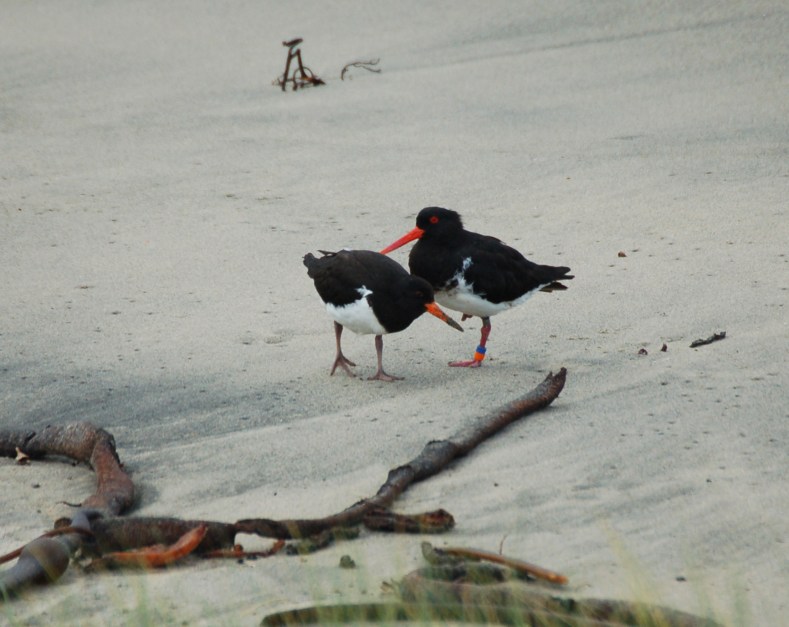 In the 1970s there were only about 50 Chatham Island oystercatchers (Haematopus chathamensis). With management there are now over 300, but they are still the world’s rarest oystercatcher. These were on Pitt, very close to the shore plover above: