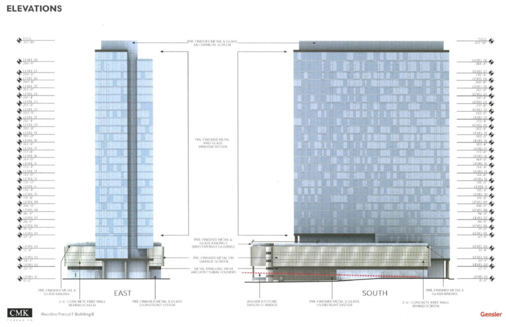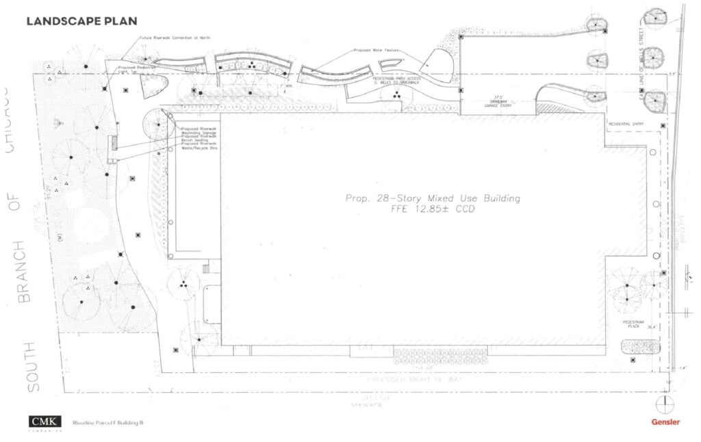 Designed by the architecture firm Gensler, the tower would rise near the northern end of the property, leaving space for an additional structure to the north. To the south of the proposal is 1010 South Wells Street, Riverline’s first building, which was revealed last year and has had some light foundation work completed as of now.
