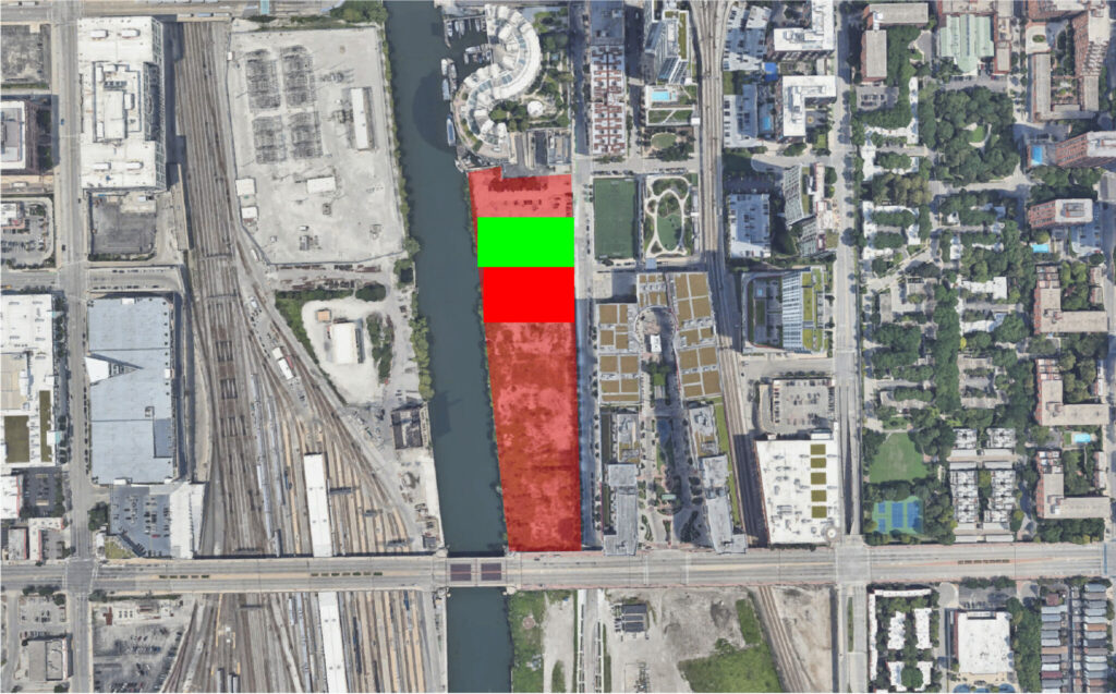 Riverline site map. 910 Wells (green) – 1010 Wells (red).