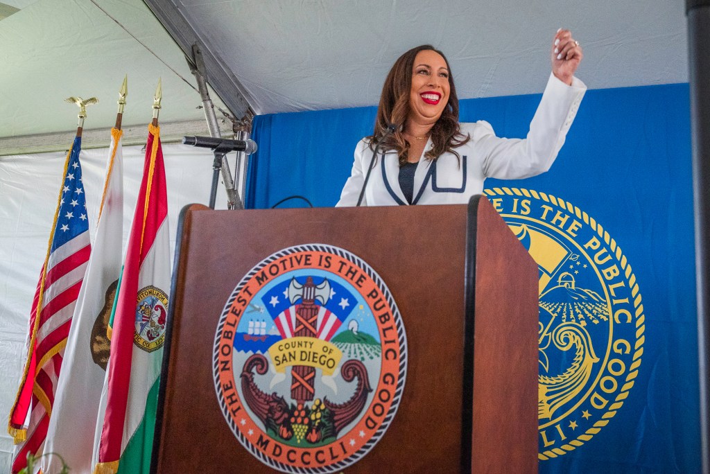 Newly-elected San Diego County Supervisor Paloma Aguirre at Waterfront Park on July 22, 2025. / Vito di Stefano for Voice of San Diego