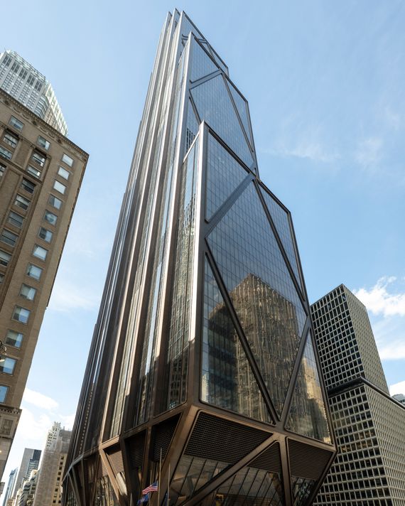 Designed by Foster and Partners, the skyscraper is the latest but not the last of the luxury behemoths born of the East Midtown rezoning that passed City Council in 2017. That law was intended to resurrect midtown as one of the world’s great business districts by encouraging the construction of bigger, bulkier, costlier skyscrapers. Erecting JPMorgan’s new headquarters meant tearing down the Union Carbide building, a handsome example of midcentury modernism designed by SOM’s Natalie de Blois, which was doomed precisely because, like Foster’s successor, it was so well suited to its time. De Blois was one of the pioneers of pared-down, glass-skinned boxes that reflected the era’s allegiance to efficiency, transparency, and unsentimental modernity. JPMorgan bought and renovated the building, then judged it obsolete: too-low ceilings, too many columns, too few bathrooms (especially for women), and not nearly enough space for the company’s updated needs. It required a tower that was more spacious, more seductive, and, crucially, capable of switching to its own source of power at a millisecond’s notice if the electrical grid went down.