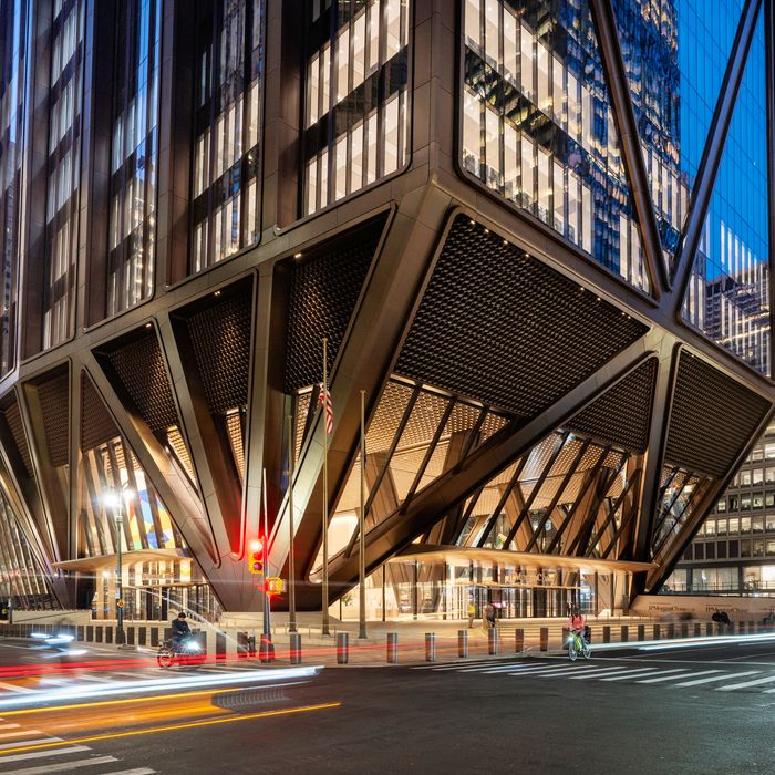Foster’s most effective move toward disarming a potentially resentful public was to pull the lobby’s glass walls in from both Madison and Park Avenues, leaving generously landscaped areas, then let the building spread out overhead. But instead of making do with an ordinary cantilever that might feel like a highway viaduct, Foster angled the exterior wall so it becomes a canopy, keeping the rain out but letting light flow down into the plaza with its café tables, fountain, and built-in benches. That gesture of noblesse oblige represents a philosophical challenge to Mamdani because it invites New Yorkers to shelter beneath JPMorgan’s canopy and lounge in JPMorgan’s sliver of park. Adding privately owned public space in exchange for extra height is a concept enshrined in city law, and the bank would probably not have bothered with it otherwise. Even so, the Tower of Dimon, sitting at the intersection of finance and real estate, twines itself literally through the physical city, from the train tunnels below to the sidewalk and up to the skyline — and through its urban culture, too. From footing to crown, the bankers have used architecture to beam a message to the incoming mayor: Demonize us at your peril. Mamdani’s city of street vendors and Queens bodegas might seem incompatible with Dimon’s glinting Manhattan, but they’re really interdependent elements of the same complex metropolis.