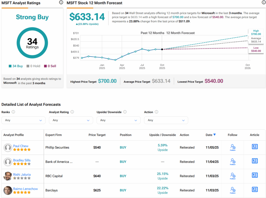 Turning to Wall Street, analysts have a Strong Buy consensus rating on MSFT stock based on 34 Buys assigned in the last three months. Furthermore, the average MSFT price target of $633.14 per share implies 26% upside potential.