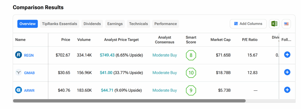 All three stocks currently hold a Moderate Buy consensus rating from Wall Street analysts. However, Genmab’s shares comfortably lead the group, offering up upside potential of about 34% at an average GMAB price target of $41 per share.
