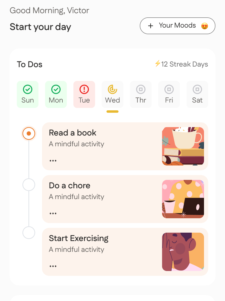 Their flagship product, Companion, is an AI-driven mental health assistant that checks in daily with users through push notifications and voice or text conversations. Companion listens, detects signs of mental health strain, and logs patterns over time. Users can engage in a voice or text conversation with the AI, which learns the user’s context and helps them identify their moods. The app also provides non-critical support like journaling tools and goal-setting features.